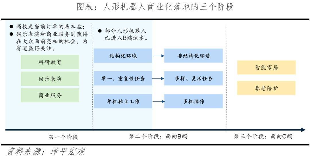 人形机器人产业应用双线并行:B端率先落地,C端培育市场。B端在工厂、商用服务等场景率先突破,尤其是在汽车制造和3C电子等工业领域,以优必选为代表的厂商已进入工厂进行实训,从测试走向小批量应用。C端消费市场随着“万元级”产品的出现开始被激活,虽然现阶段主要满足用户的情感和新奇体验,但已有效激发了市场的长期潜力。