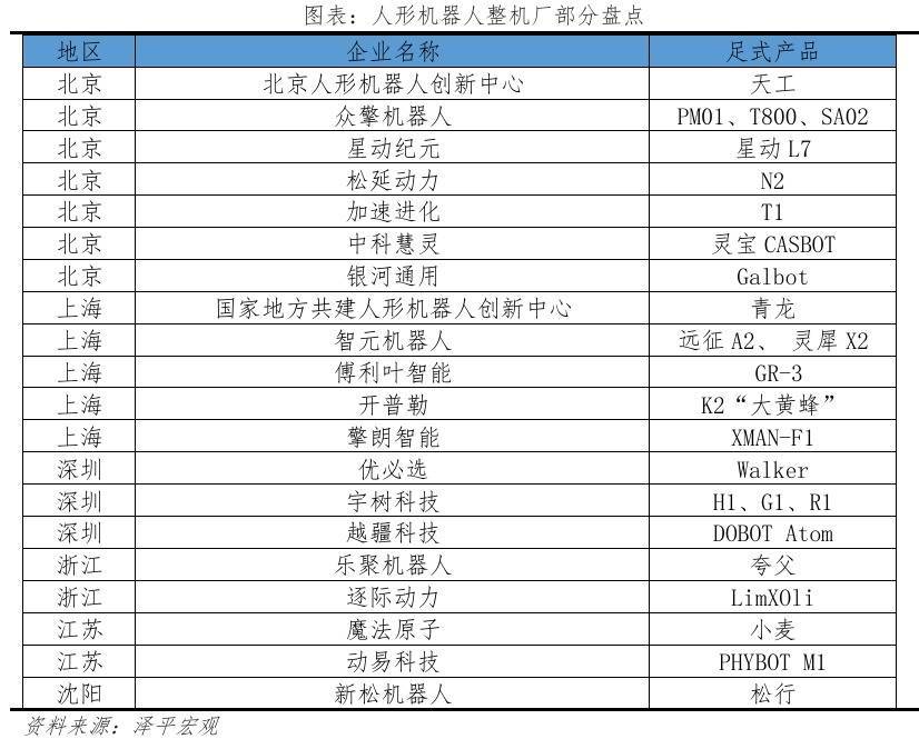 人形机器人企业“百花齐放”,市场竞争格局初步形成。整机厂商在京、沪、深等地已形成三大产业高地,同时,资本市场成为竞争的关键变量,继优必选上市后,宇树科技、智元机器人等企业也开启了IPO进程,资本的注入将直接影响各厂商的研发投入和市场扩张速度,从而决定未来的行业排位。